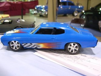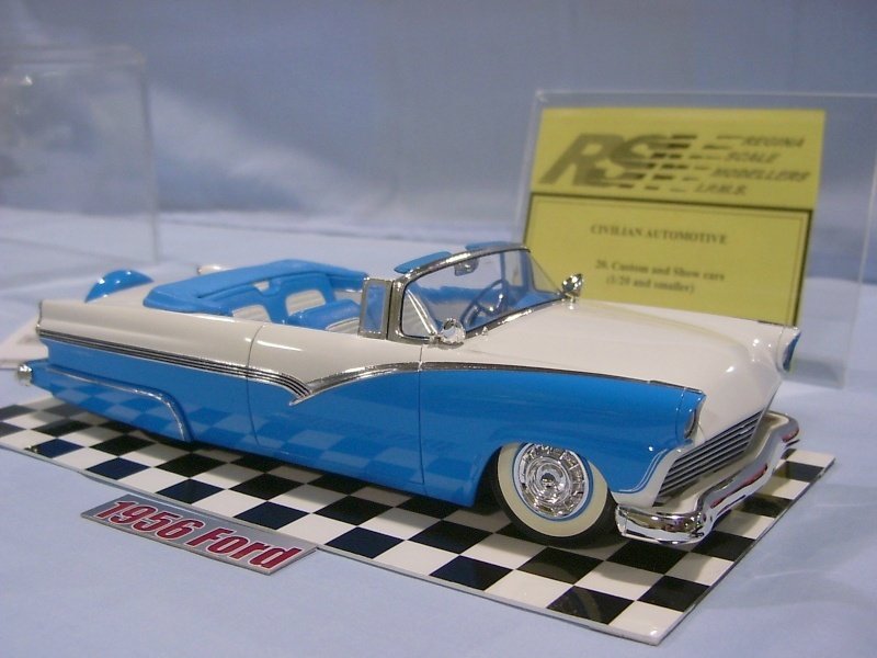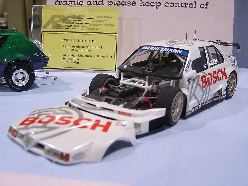 Replica Stock Leith James - 1966 Shelby GT350 convertible Jnr: Robert Gall - 1996 Trans Am Street Modified Ron Gall - 1960 Ford Starliner Jnr: Robert Gall - 1996 Trans Am Competition-Closed Wheel a) Straightline William Yee - 1949 Plymouth Coupe b) Oval/Road Ron Gall - Alfa Romeo DTM Touring Car c) Stock Car Ted McPherson - Cheerios Stock Car Custom & Show Car Ed Kereluk - 1956 Ford Street Rod Colin Kunkel - 1932 Ford 3-Window Coupe Jnr: Robert Gall - 1934 Ford Public Service Vehicle Ron Gall - WWIII Survival Car Light Truck Jnr: Robert Gall - Ford Expedition Heavy Truck Ted McPherson - Ford Monster Truck Motorcycle Dave Kapp - Batcycle Large Scale Al Lindemann - 1965 Corvette Muscle Car Jnr: Robert Gall - Chevrolet Chevelle