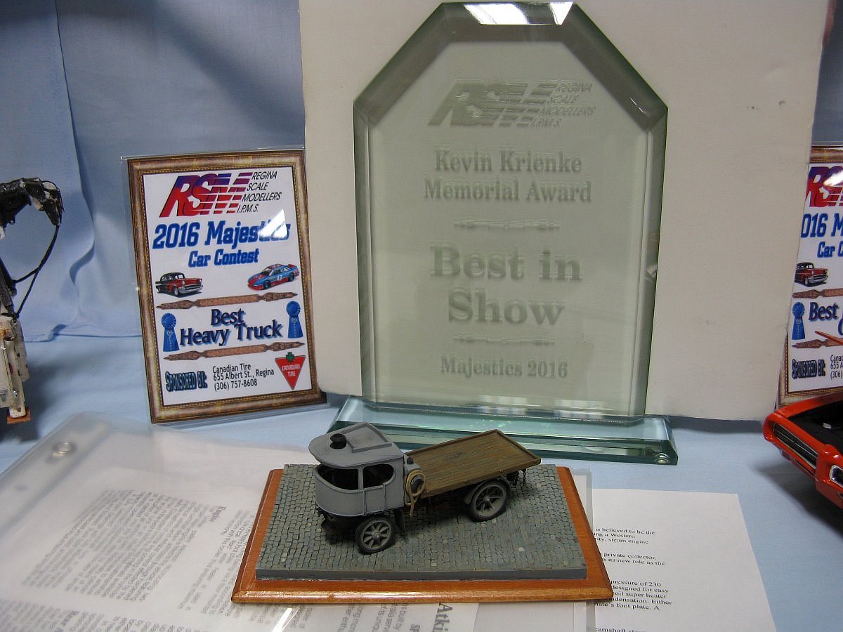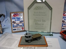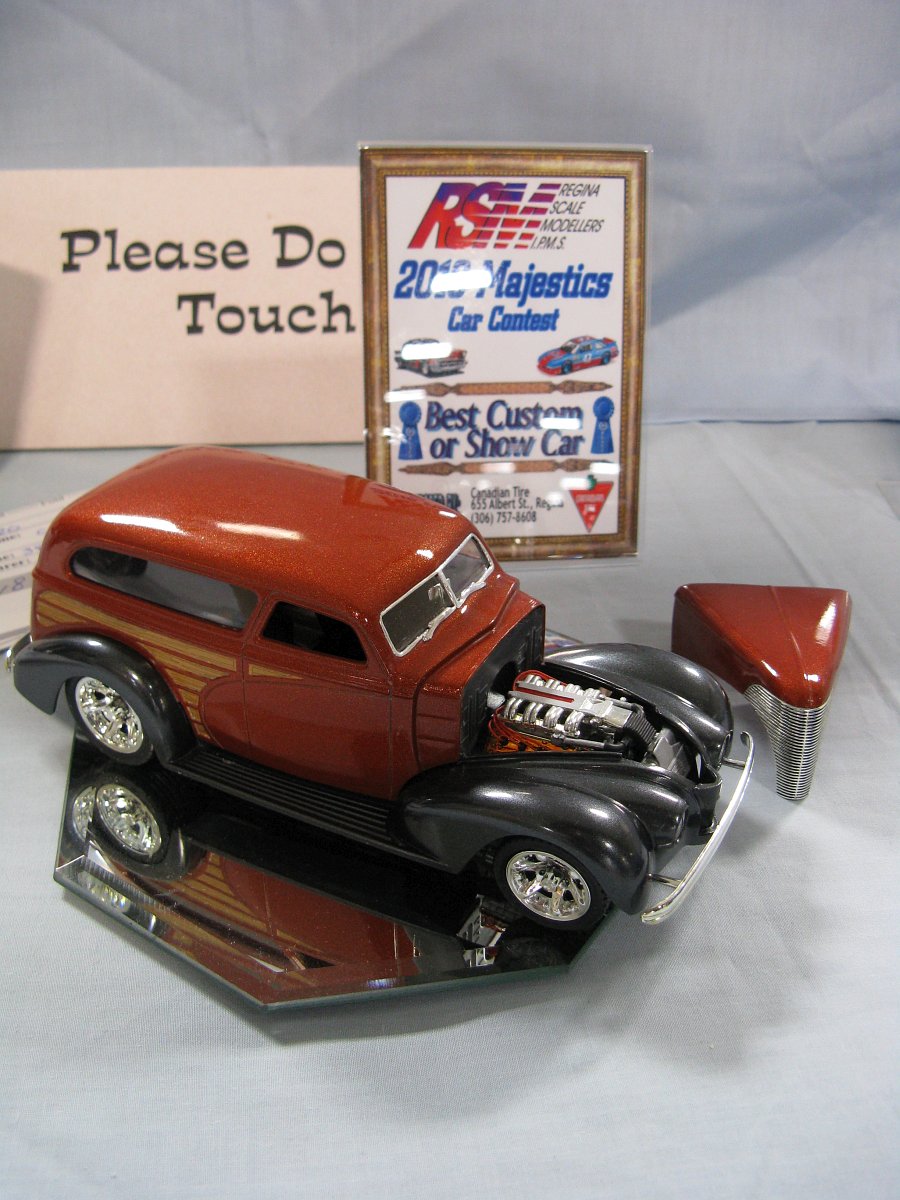 Category 16: Replica Stock 1st - Honda NSX Greg McKinnon 2nd - VW T3 Camper Justin Antonowitsch 3rd - '53 Ford Stationwagon Curfew James Category 17: Street Modified & Pro Street 1st - '66 Nova Greg McKinnon 2nd - 1975 AMC Gremlin X Justin Antonowitsch 3rd - 1966 Chevelle Wagon Ted McPherson Category 19: Competition Closed Wheel 1st - Toyota GT-One Greg McKinnon Category 20: Custom & Show cars 1st - 1939 Chev Rod Greg McKinnon Category 21: Street Rods 1st - Rat Rod Greg McKinnon Category 22: Public Service Vehicles 1st - Ford 9000 Wrecker Michael Evans 2nd - Kenworth W-900 Wrecker Justin Antonowitsch Category 23: Light Trucks 1st - 1991 Chevy Extended Cab Pilot Truck Frank Turgeon Category 24: Heavy Trucks 1st - 1924 Atkinson 6-ton Steam Lorry Al Magnus 2nd - 2010 International LoneStar Trevor Buckler 3rd - Peterbuilt 359 Tractor & Car Carrier Ted McPherson Category 26: Large Scales 1st - 1984-88 Corvette Al Lindemann Category 27: Muscle cars 1st - '69 GTO Judge Brian Lloyd