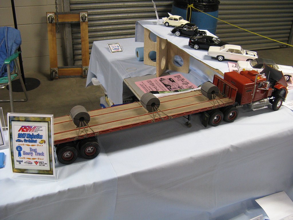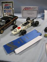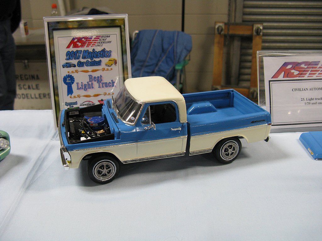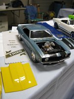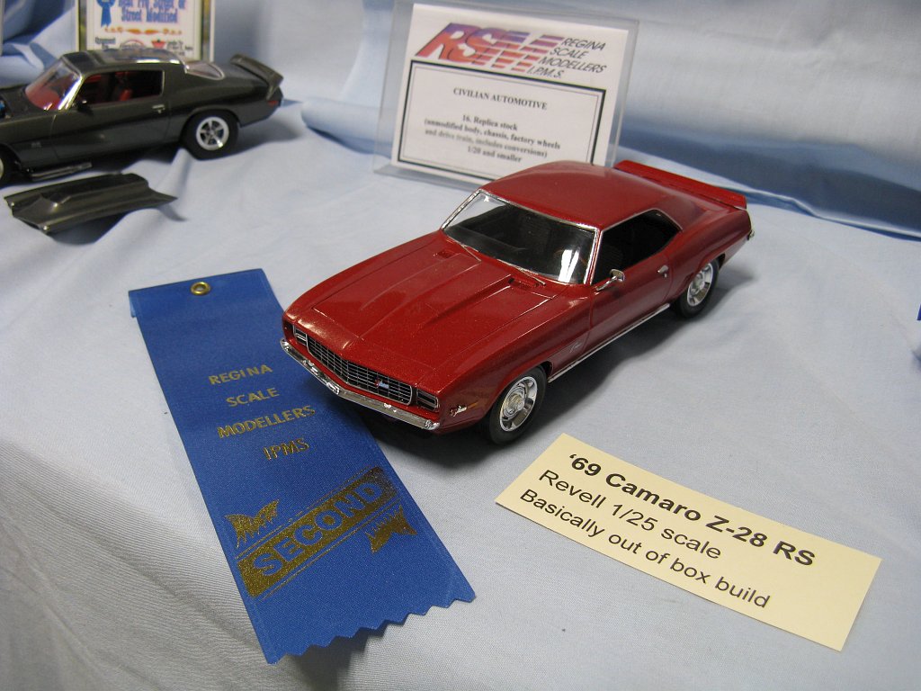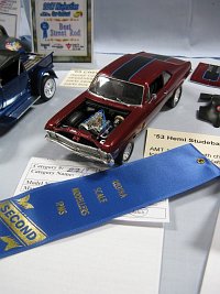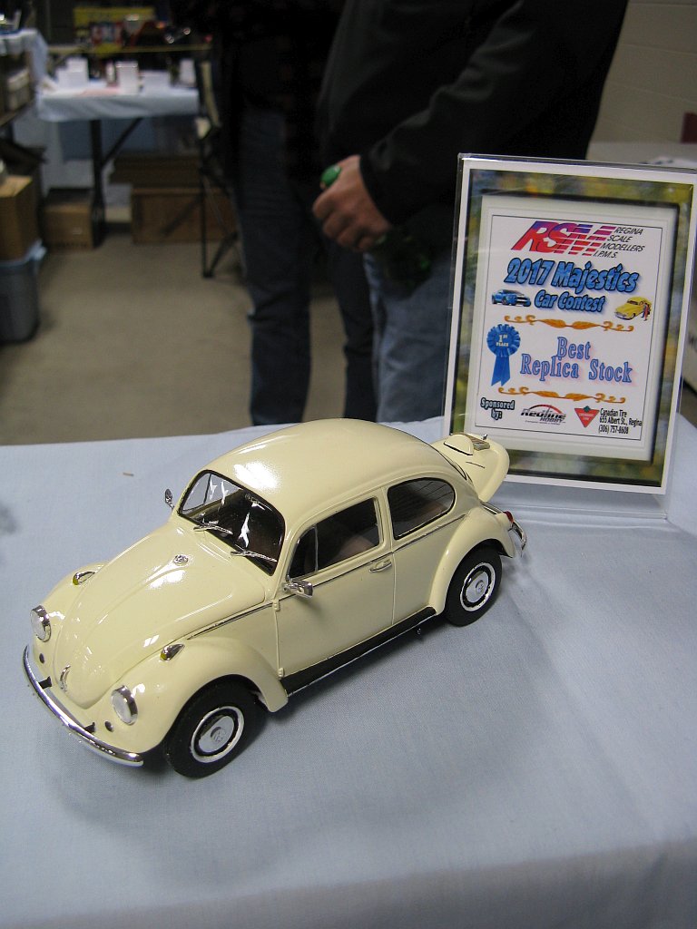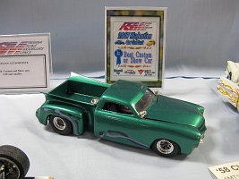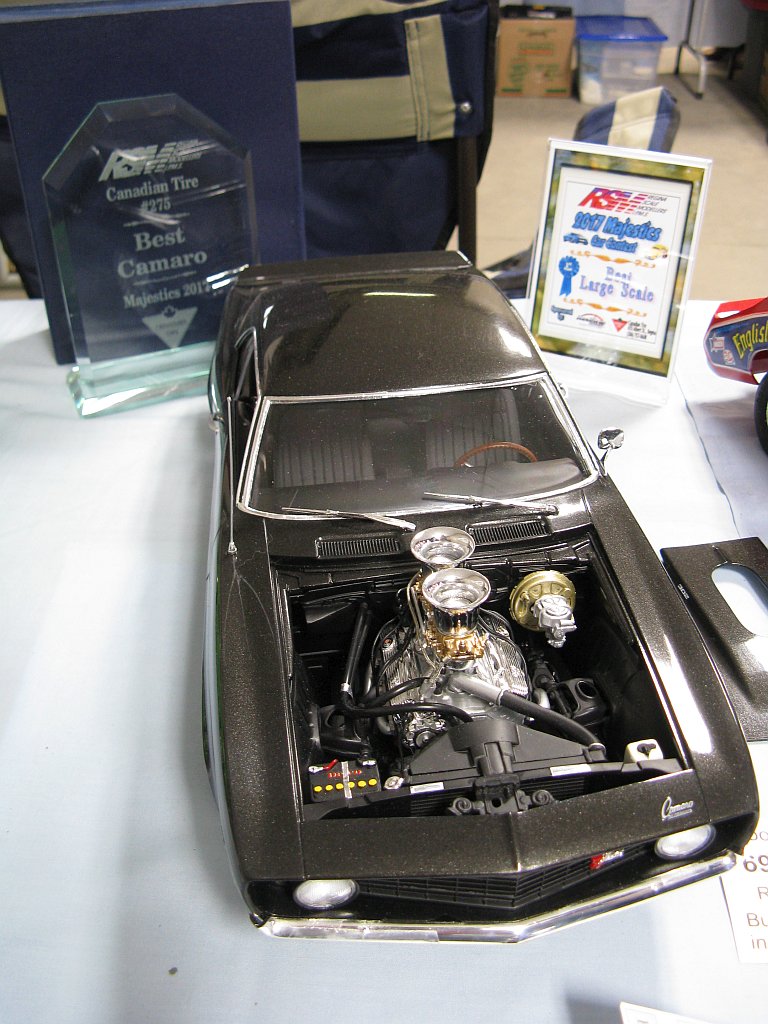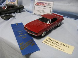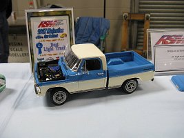 Category 16: Replica Stock 1st - Justin Antonowitsch - 1968 Volkwagen Beetle 2nd - Greg McKinnon - '69 Camaro Z/28 RS 3rd - Justin Antonowitsch - '83 Hurst Oldsmobile Category 17: Street Modified & Pro Street 1st - Greg McKinnon - '70 Camaro Z/28 Category 18: Competition Open Wheel (1/20 and smaller) 1st - Greg McKinnon - Ferrari 312T3 2nd - Ted McPherson - Honda R272 3rd - Dave Kapp - Tony Nancy Rail Category 19: Competition Closed Wheel 1st - Greg McKinnon - Motown Missile 2nd - Greg McKinnon - '69 Chevy Nova SS 3rd - Greg McKinnon - '70 Buick GSX Category 20: Custom & Show cars 1st - Brent Welta - '49 Ford Custom Coupe 2nd - Dave Kapp - Ice "T" 3rd - Dave Kapp - Sand Shark Category 21: Street Rods 1st - Greg McKinnon - '29 Ford Custom Pickup 2nd - Greg McKinnon - '29 Ford Roadster 3rd - Greg McKinnon - '32 Ford 5-window Coupe Category 23: Light Trucks 1st - Justin Antonowitsch - 1972 Ford F100 Sport Custom Category 24: Heavy Trucks 1st - Brian Lloyd - White Road Boss w. Trailer Category 25: Motorcycles 1st - Al Magnus - Cushman model 1939 Package-Kar Category 26: Large Scales 1st - Greg McKinnon - Foose '69 Camaro Z/28 2nd - Dave Kapp - Revellution Funny Car 3rd - Al Lindemann - 1982 Firebird Category 27: Muscle cars 1st - Darin Wielgoz - '70 Boss 429 Mustang 2nd - Darin Wielgoz - '64 Mustang Convertible 3rd - Darin Wielgoz - '69 Camaro Z/28 Category 34: Junior 1st - Mercury Kapp - Mercury Marauder Category 41: Dioramas (all scales) 1st - Brent Welta - Junkyard '40 Ford Coupe & '34 Ford Pickup 2nd - Michael Evan - '32 Ford Coupe Category 46: Miscellaneous (all scales) 1st - Justin Antonowitsch - 'Gone Fishing' set