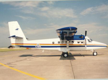 The early 1970's brought about a new name and a new look to the Force. In 1972 the RCMP Air Services became the Air Services Directorate. In the first two years of the decade six out of eleven Twin Otters were purchased and these twin engine turbo props would quickly prove as valuable as their older siblings, the Otters and Beavers. With the Twin Otters also came the new look, overall white with dark blue wings and a broad blue outlined by narrow yellow stripes that started at the top of the fin and extending onto the fuselage to the nose. The value of DeHavilland’s new twin was quickly proven when in both 1970 and 1973 the Queen and her family used these rugged aircraft for their tours of Canada’s remote north. The reliability and versatility of these aircraft during their first years of operation quickly pointed out the inadequacies of the older aircraft in the fleet. First to go were the last remaining Expeditors, although MPI was kept on as late as 1973 to provide advanced training. By the end of the decade five of the remaining Beavers were gone and only three of the remaining Otters were still in service. They had all been replaced by the purchase of the nine Twin Otters on strength by the end of the decade. The crash of an Otter (MPZ) at Deer Lake, Nfld. in 1971 provided the Force with the long sought opportunity to add a helicopter to the fleet. Bell 212 (CF-MPZ) would prove ideal for the rugged, notoriously bad weather of the coastal areas of Newfoundland and it was hoped that twin engines would provide a greater degree of safety. Although the use of rotary aircraft has proven very successful, the 212 proved too expensive to operate and it was traded for a Bell 206 in 1980. The force continues to operate a small fleet of nine rotary aircraft made up of Jet Rangers, Long Rangers and two Aerospatiales 350's, just recently purchased. All helicopters would also be painted in variations of the current scheme at the time of their purchase. By the end of the decade the total fleet would consist of 27 aircraft divided between three Inspectorates, fixed wing operations for western Canada based in Edmonton, fixed wing operations for eastern Canada and rotary wing operations for Canada based at headquarters in Ottawa. Tasks for the fleet remained largely unchanged, transportation of personal and prisoners, search and rescue, and some coastal patrol.