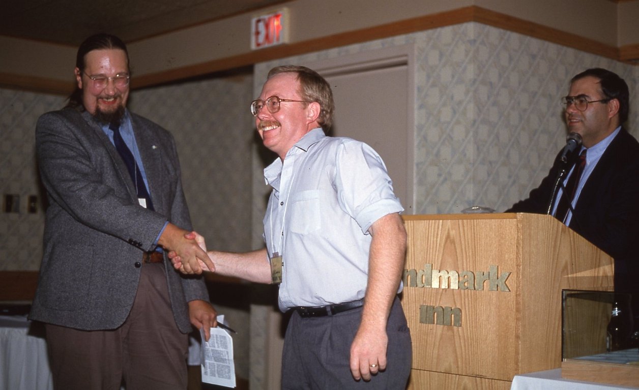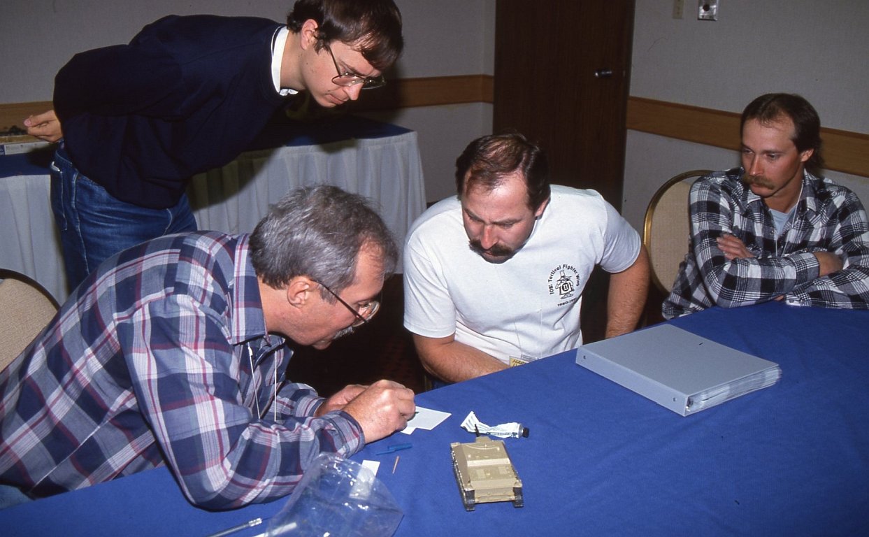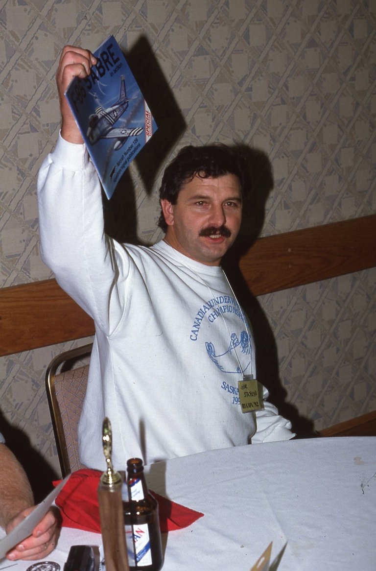 Ron Hofer (2nd left), Neil Hill (red jacket), Michael Koslovsky (Regina sweat shirt)