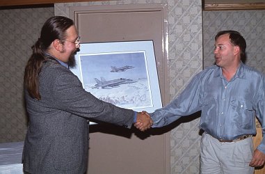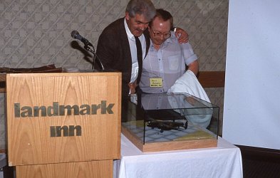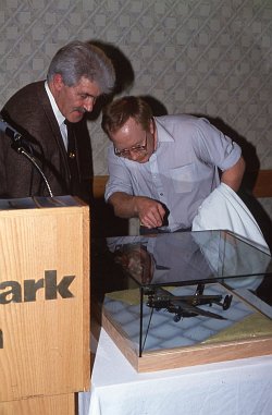 (left photo)Brian McConnell receiving one of his many awards, by the looks of it possibly for Best Luftwaffe Aircraft.