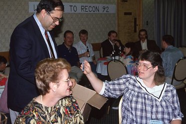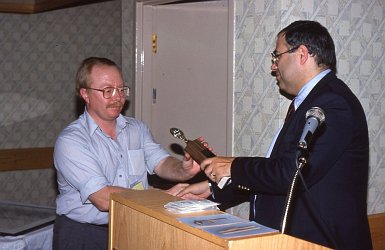RSM member Gene Stacyszyn celebrating a raffle win |
