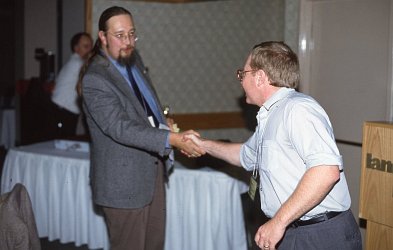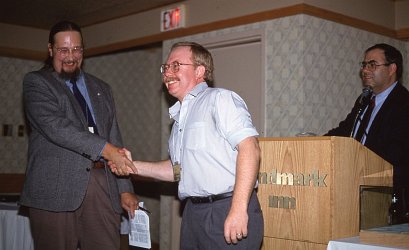 (right photos) More congratulatory handshakes for Brian McConnel from RSM President Michael Koslovsky. |