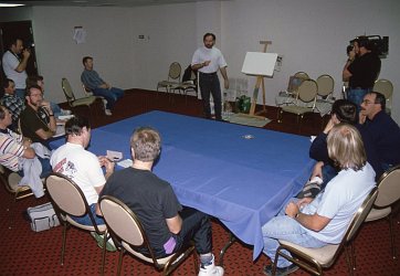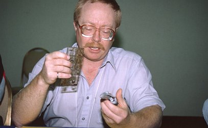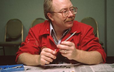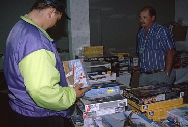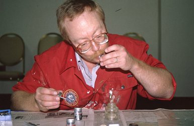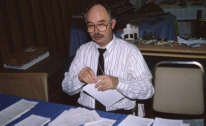 Hobbyworld owner Henry Redekop (right) manning his vendor table |