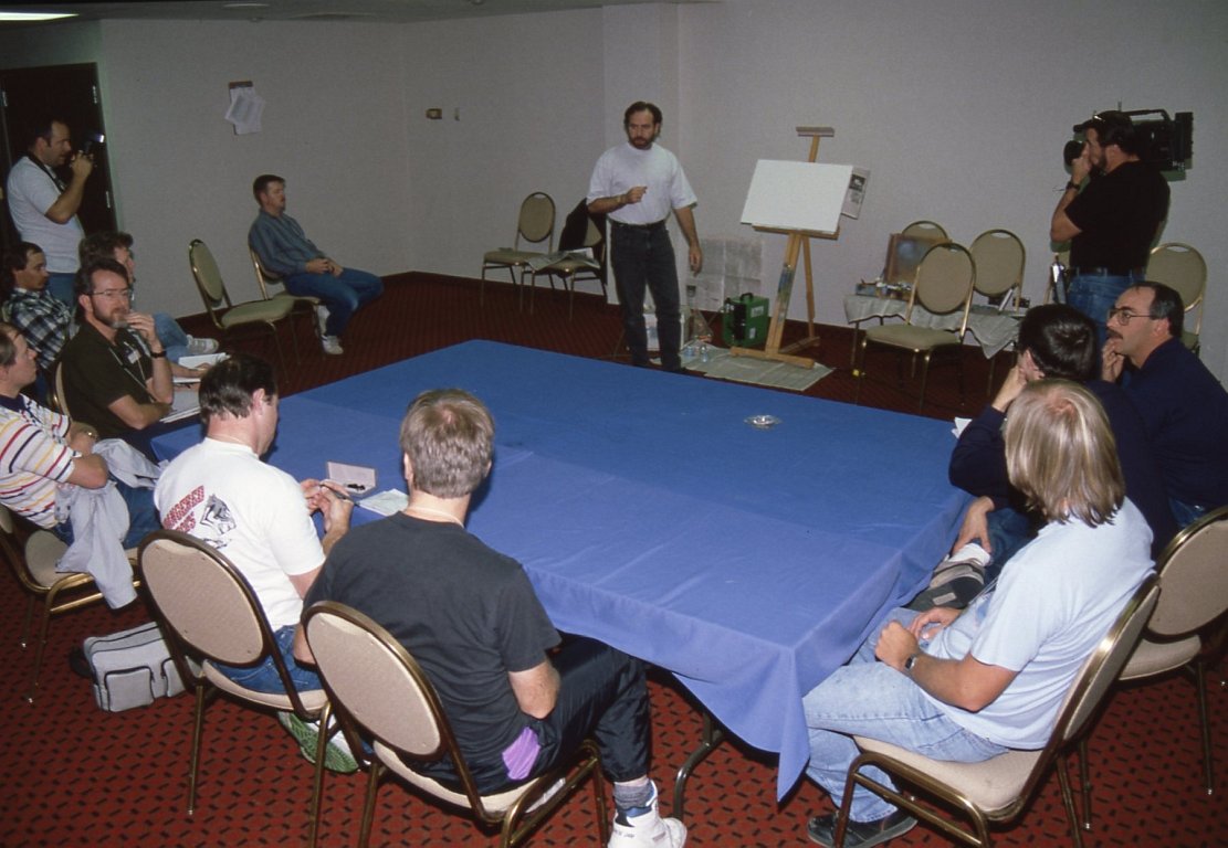 RSM member Cam Barker (red sweat shirt above & right) leading a seminar demonstrating the finer arts of armour building