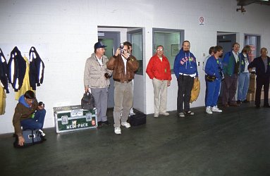 and Grant Wilson (3rd from the right) pose for the camera while waiting in line